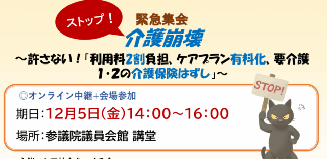 ストップ!介護崩壊 「利用料2割負担、ケアプラン有料化、要介護1・2の介護保険はずし」を許さない!